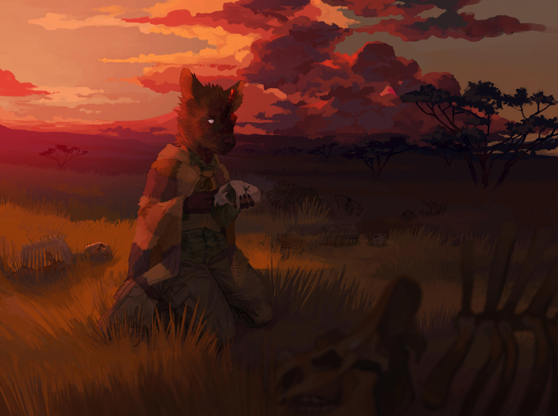 It is made to be not the personification of gun violence, it's a creature that embodies the aftermath of gun violence. Crossfire is not the thing one should fear; though it is an alarming sight and a creature who is mangled with shrapnel wounds and impaled with gun barrels, it is more of a warning to heed. It is the collector of what is left after a carnage and its spoils are not fruitful in the slightest. Crossfire is a hyena so scavenging is in its nature but the guns, bullets and everything else it consumes mangles its form more and more.